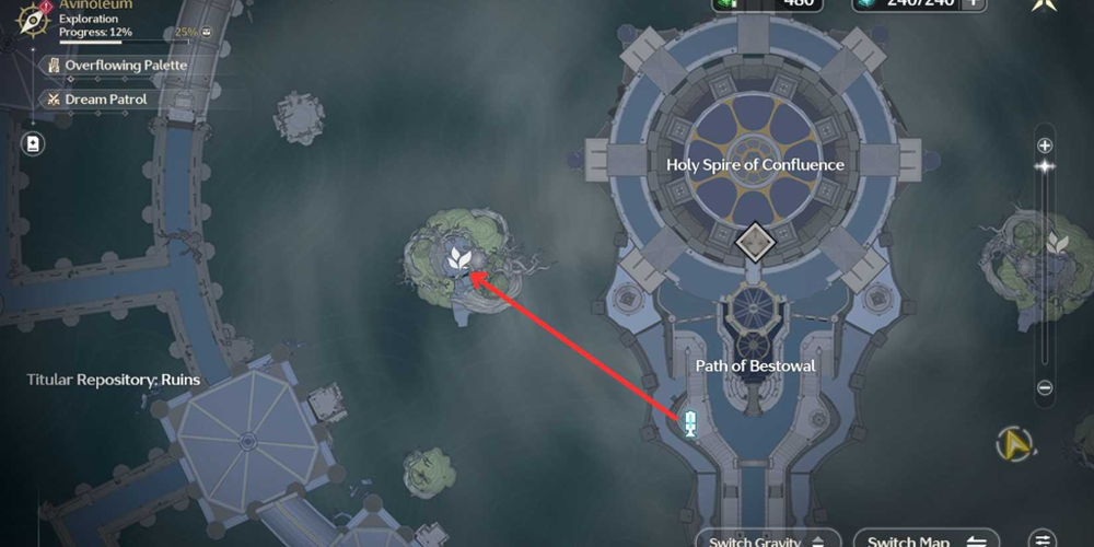 Begin by heading to the area located to the left of the Holy Spire of Confluence.