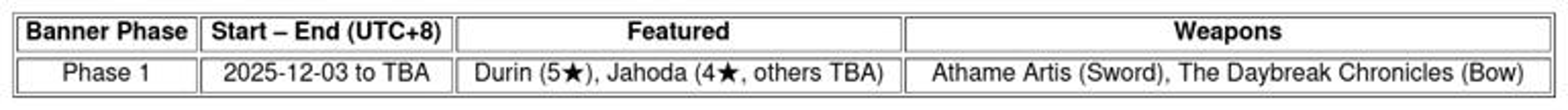 Key highlights include the unveiling of Durin, a 5-star pyro swordsman, who takes center stage on the new banner. Jahoda also joins the roster as a versatile 4-star anemo character suitable for healing and support roles with bows.