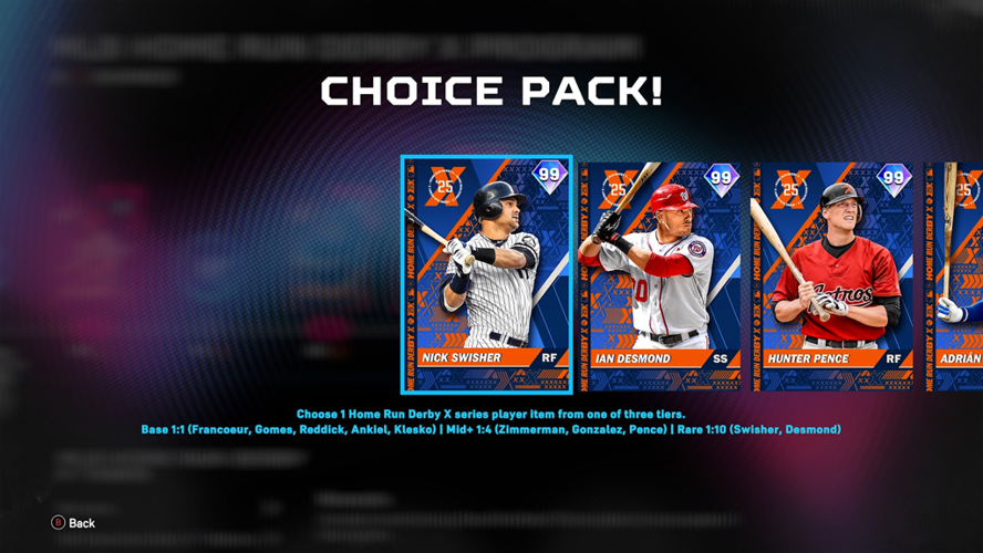 The Home Run Derby X program offers players a variety of free cards to collect. A total of six unique players can be obtained through participation, with the second-to-last reward being a special Home Run Derby X pack.