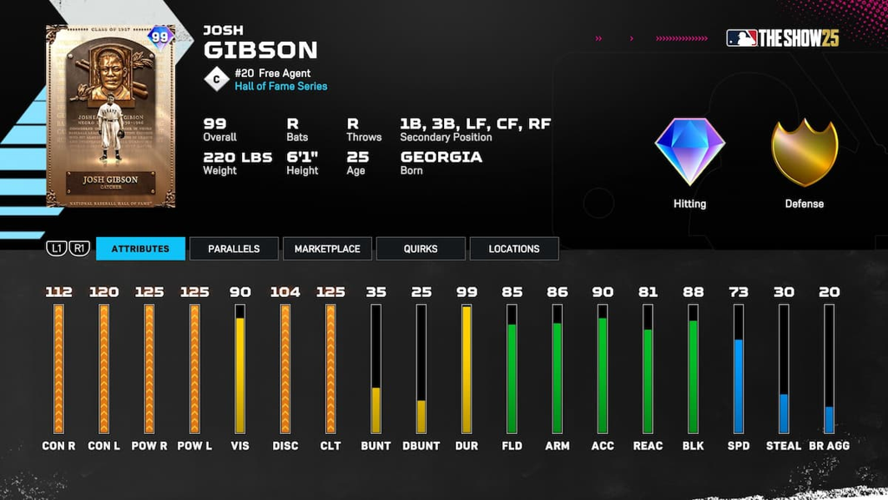 Oscar Charleston, renowned as one of the most dominant hitters in Negro leagues history, now boasts a 99 overall card obtainable through World Series rewards. His impressive attributes include exceptional contact against right-handed pitchers with a rating of 125, and solid contact versus lefties at 116. Power ratings are also notable, with 111 against right-handed pitching and 106 against lefties, making him a versatile threat at the plate.