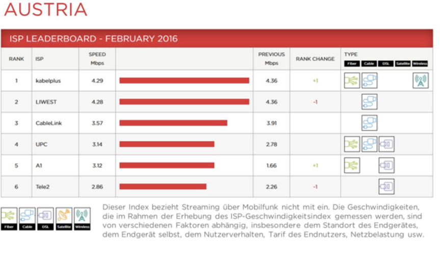 In Austria, A1 significantly boosted its average speed, nearly doubling from 1.66 Mbps in January to 3.12 Mbps, positioning it fifth among local ISPs. Meanwhile, in Canada, Bell Aliant's fiber optic service experienced a decline, dropping to 12th place with an average speed of 3.07 Mbps, down from 3.40 Mbps in January and previously ranking third in November 2015 at 3.74 Mbps.