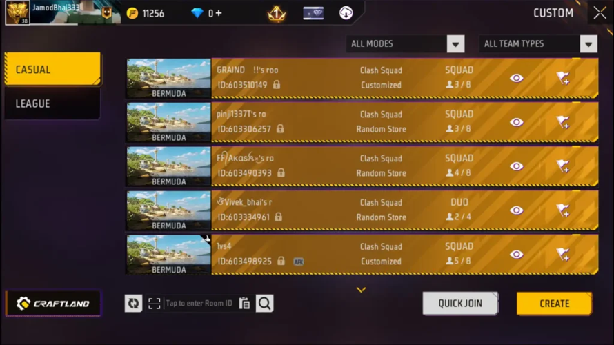 These rooms are available for various game modes, including Clash Squad and Battle Royale. You can tailor the map selection, number of players, team setups, and other settings to your liking.